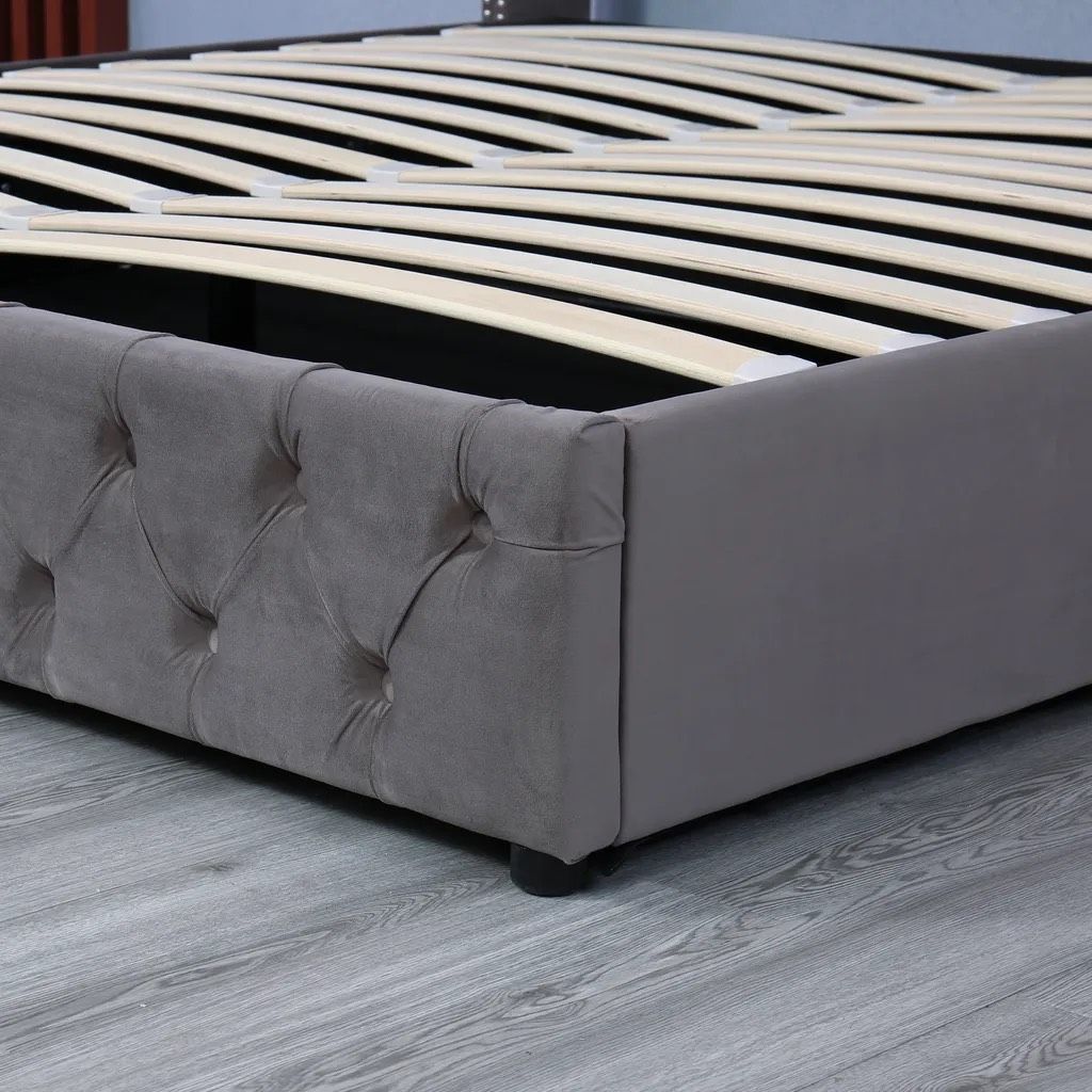 Stil Tasarımı: Daha yüksek yatak başlığı (94,5 cm) size daha dengeli ve rahat bir koltuk başlığı ve sırtlık sağlar. Döşemeli yatak, cilt dostu ve yumuşak dokunuşlu kadife kumaştan yapılmıştır ve size mükemmel bir uyku deneyimi sunar. Gri, yumuşak yatağı daha kir tutmaz hale getirir.